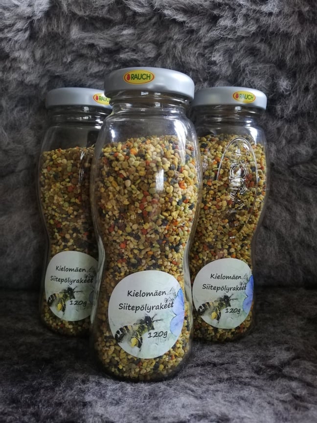 Pesien lentoaukolle asetettavilla keräimillä me keräämme osan siitepölystä syksyn ja talven luonnolliseksi ravintolisäksi. Keräimet tyhjennetään päivittäin ja siitepölypallerot pakastetaan. Myyntiä varten siitepölyrakeet kuivataan kasvikuivurissa ja kuivattu siitepöly säilyy huoneenlämmössä/viileässä ja valolta suojattuna hyvin.