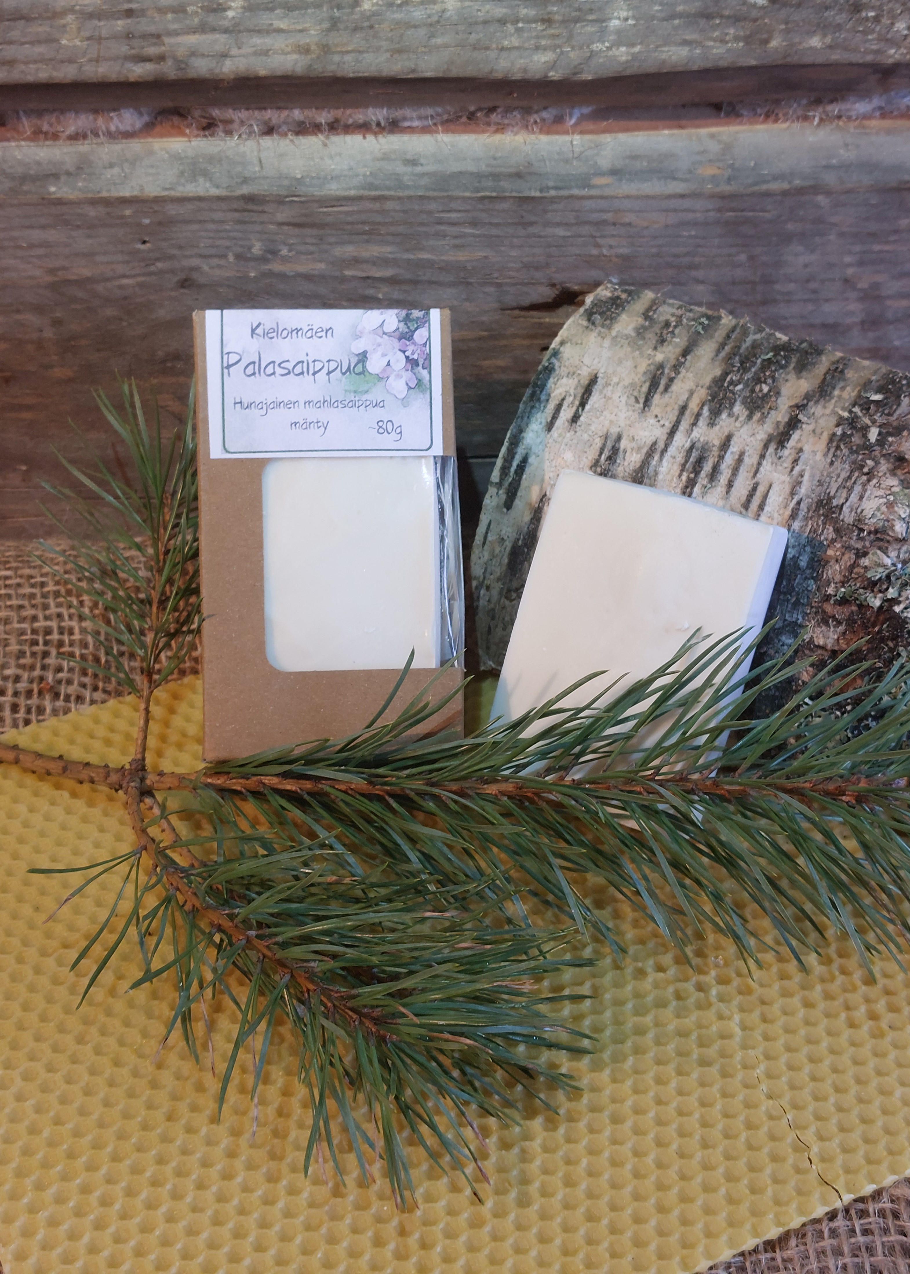 Oman metsän koivunmahlaan tehty palasaippua pesee kädet ja vartalon hellästi vaahdoten. Mäntyöljy antaa saippualle miellyttävän miedon tuoksun.