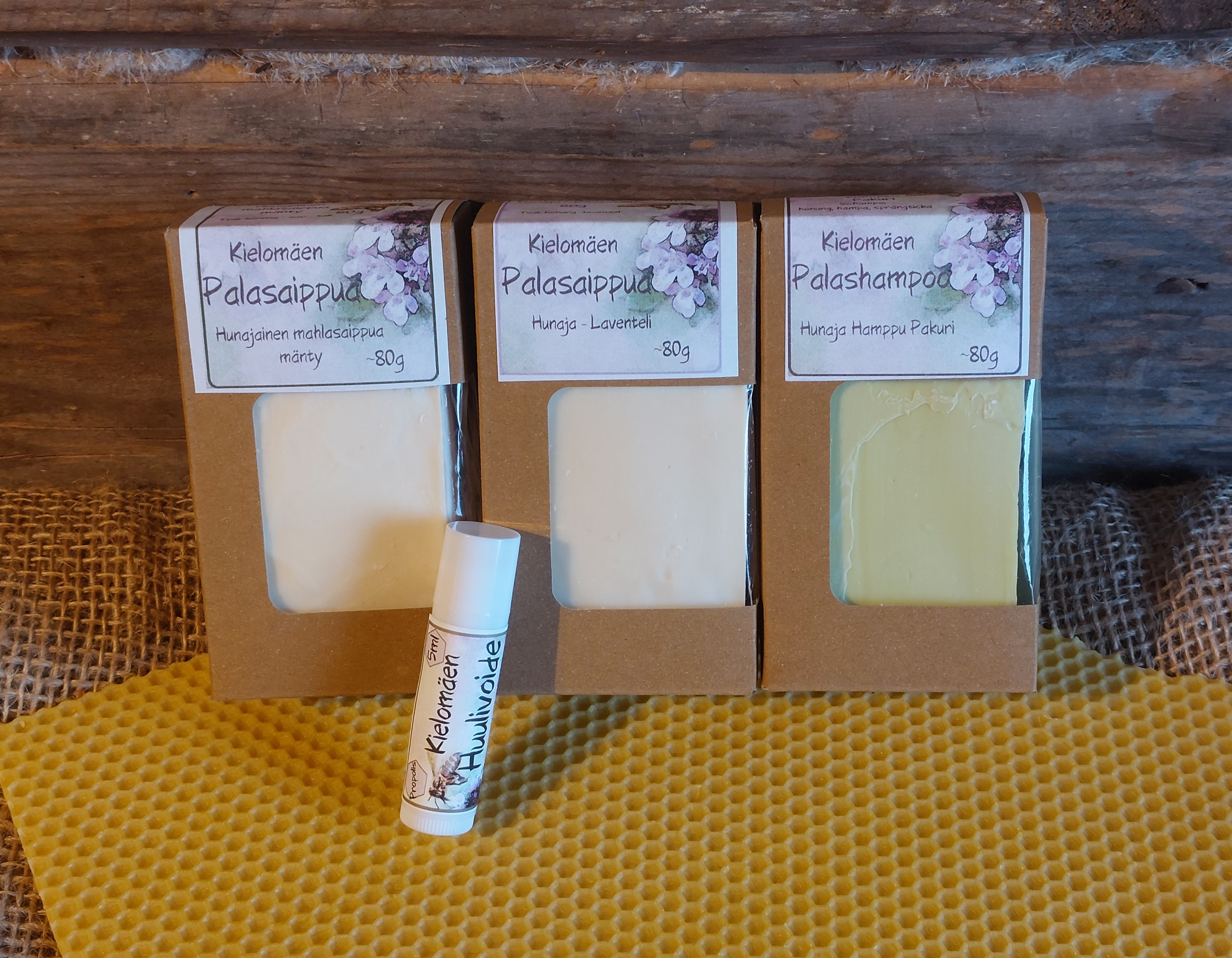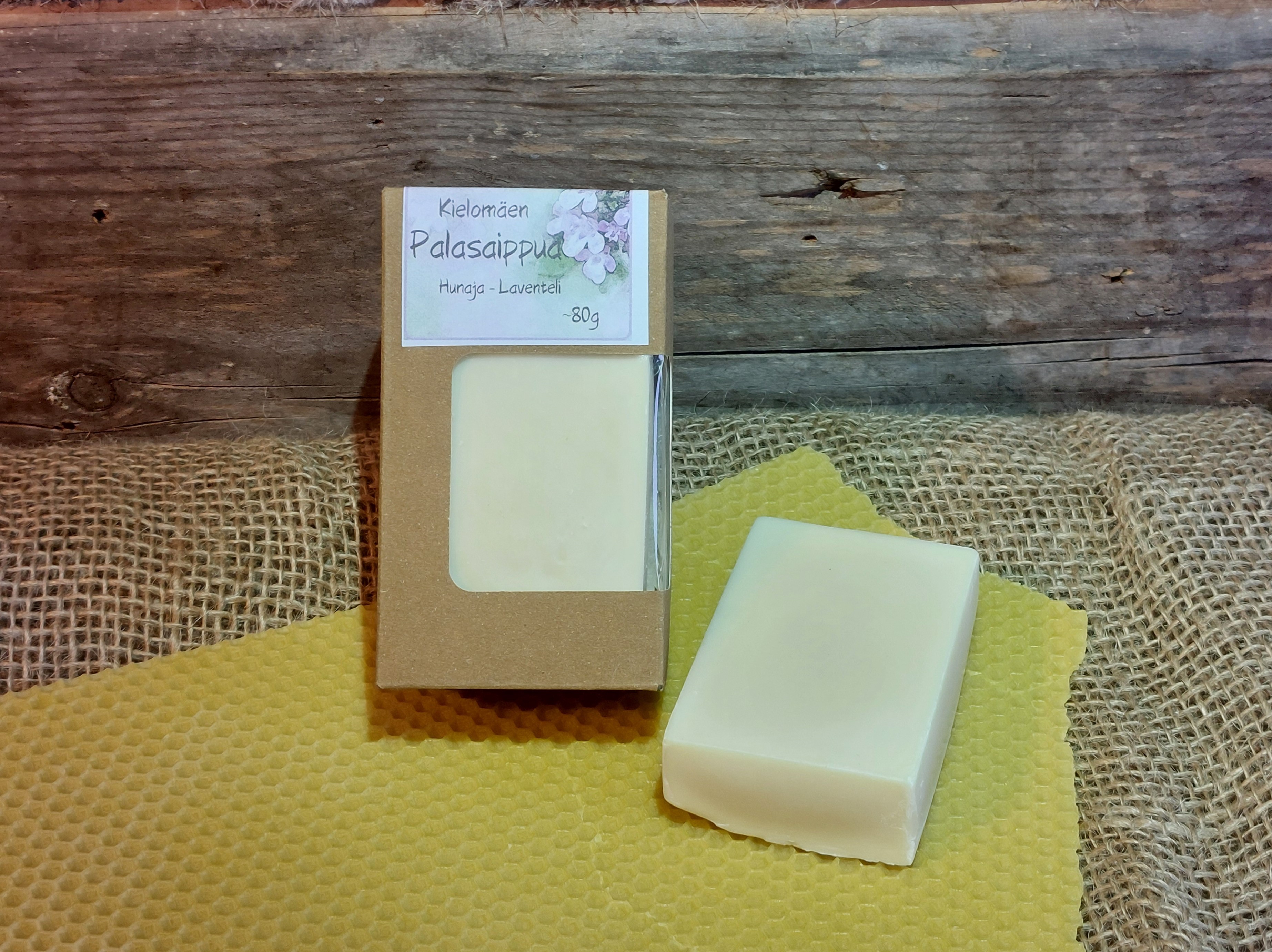 Hunajainen palasaippua on tarkoitettu ihon pesuun. Se on ihoa hoitava ja hyvin vaahtoava saippua, joka sopii loistavasti toistuviin käsienpesuihin sekä koko vartalon pesemiseen. Saippua tuoksuu hunajan lisäksi miedosti laventelilta.