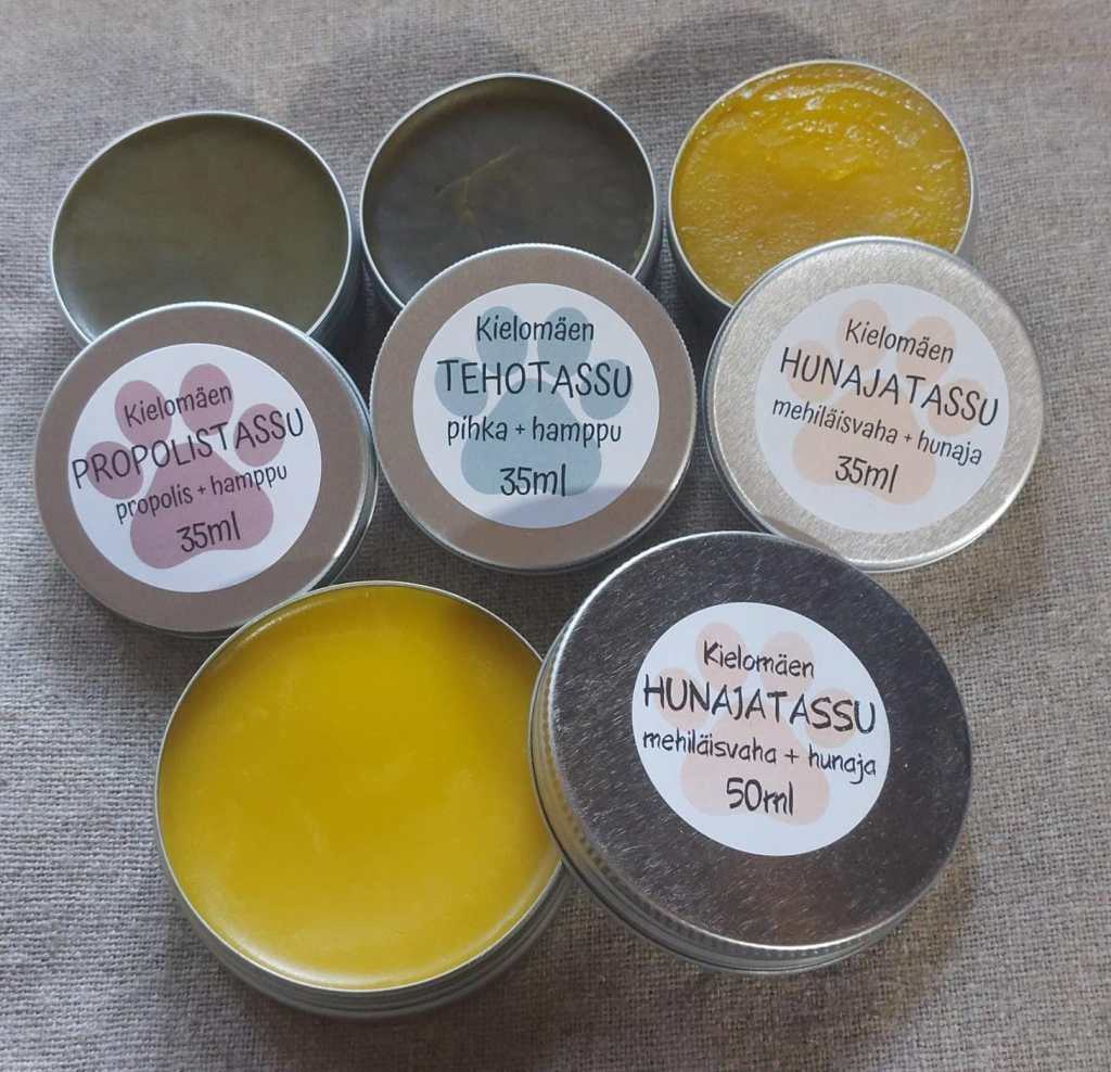 Kielomäen TASSU-vahat valmistetaan tilalla omien mehiläispesien vahasta, hunajasta ja lähituottajan kylmäpuristetuista luomukasviöljyistä.